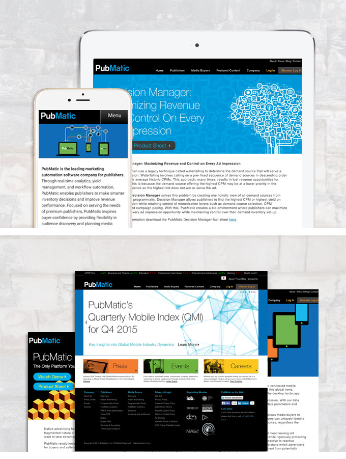 PubMatic enables publishers to realize the full potential of their digital assets. Since its founding in 2006, PubMatic has consistently been first-to-market with industry-changing products, services and systems for publishers. The corporate website is often first contact point for potential clients, investors and employees.