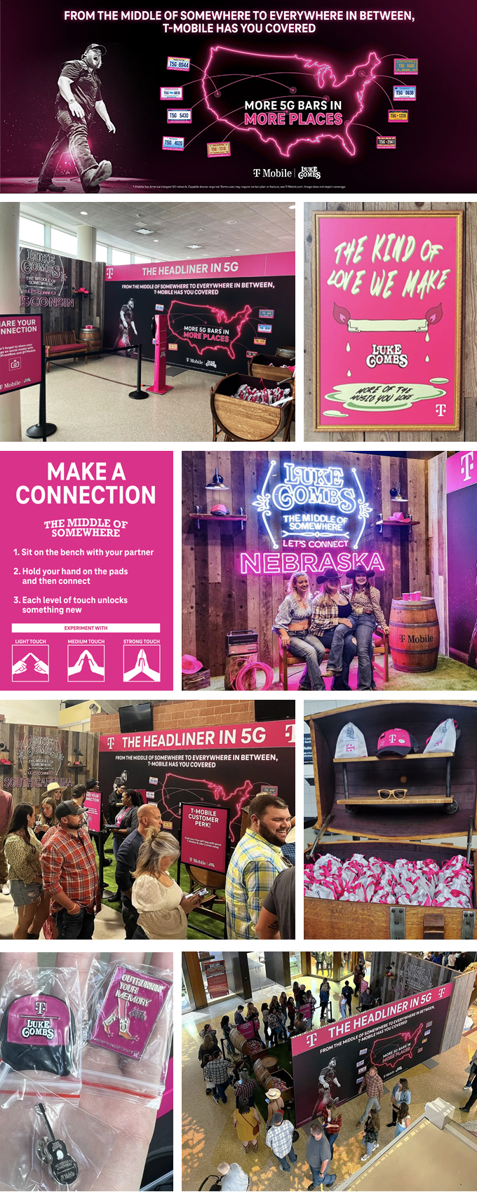 With endless 5G coverage and the perfect perks year round, its clear T-Mobile understands their customers like Luke Combs recognizes his audience. Therefore our aspirations were crystal, amplify the synergy between T-Mobile and Luke Combs in the form of an exclusive concourse experience at key stops on the Middle of Somewhere tour for select T-Mobile customers.