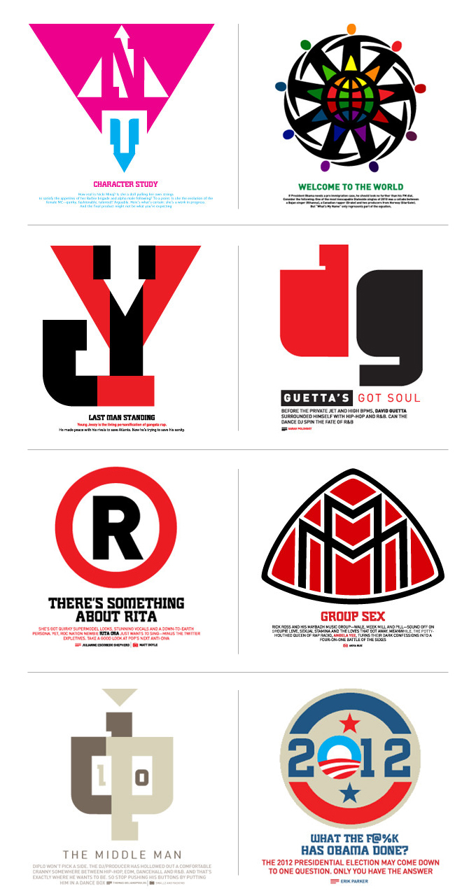 As Creative Director of the resurrected VIBE brand, I wanted to introduce a signature style characterized by geometric composition, gracefully punctuated by the fact that these arrangements would form celebrity initials for feature and cover story openers.